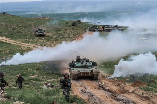 在“跨越-2016·朱日和A”演習中,紅軍參演部隊步兵和坦克協同作戰(2016年7月19日攝)。新華社發(fā)(王佳寅 攝)在“跨越-2016·朱日和A”演習中,紅軍參演部隊步兵和坦克協同作戰(2016年7月19日攝)。新華社發(fā)(王佳寅 攝)