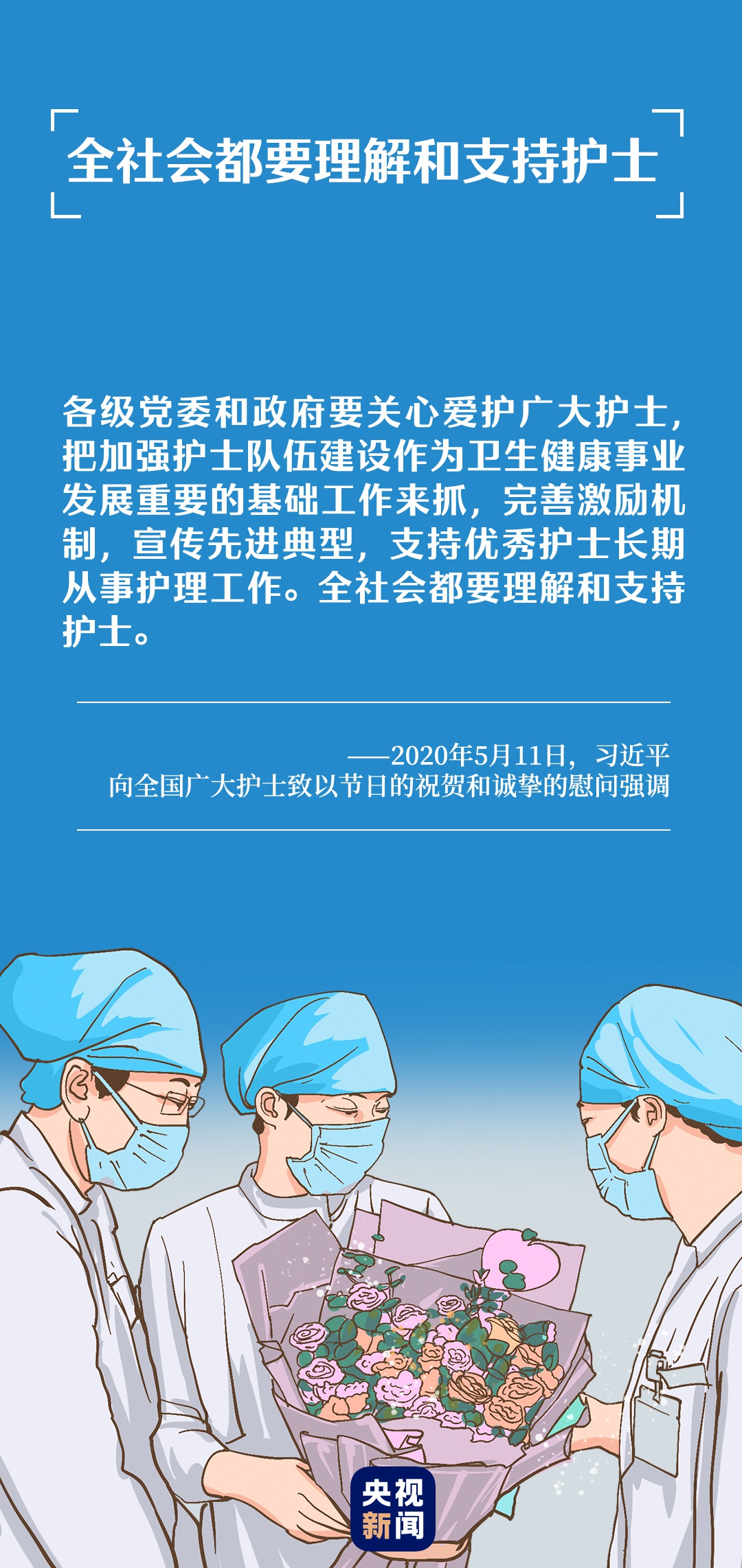 習近平總書記十分關心護士群體,要求各級黨委和政府關心愛護廣大護士,全社會(huì)都(dōu)要理解和支持護士。