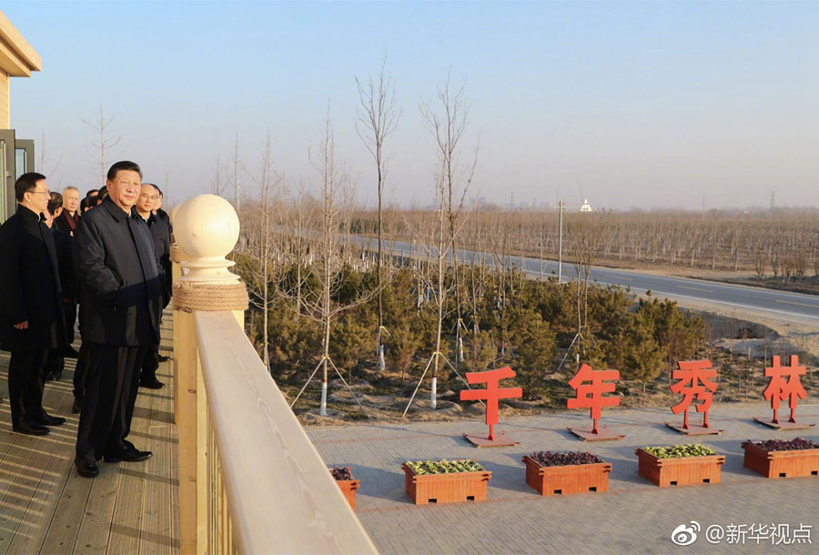 16日上午,雄安新區政務服務中心,部分進(jìn)駐雄安新區的企業代表看到總書記來了,熱情圍攏上來。習近平得知他們是到雄安新區的第一批創業者,勉勵他們說(shuō),我們建設雄安新區,需要各類企業共同參與。無論是國(guó)有的還(hái)是民營的企業,無論是本地的還(hái)是北京的企業,都(dōu)要把握住這(zhè)個千載難逢的機會(huì),把握住曆史機遇,做民族複興、改革創新的弄潮兒,創造新的輝煌業績。(記者張曉松、鞠鵬、謝環馳) 習近平:雄安要靠生态環境體現價值、增加吸引力 雄安新區堅持生态優先、綠色發(fā)展,率先啓動生态基礎設施建設和環境整治,目前已完成(chéng)11萬畝“千年秀林”建設。16日下午,習近平總書記來到“千年秀林”大清河片林一區造林區域,乘車穿行林區察看林木長(cháng)勢,登上秀林驿站二層平台遠眺林區全貌,同當地護林員代表親切交流。他說(shuō),藍天、碧水、綠樹,藍綠交織,將(jiāng)來生活的最高标準就(jiù)是生态好(hǎo)。雄安新區過(guò)去有一定的基礎,現在搞“千年秀林”,將(jiāng)來這(zhè)裡(lǐ)一定是最宜居的地方。綠水青山就(jiù)是金山銀山,雄安新區就(jiù)要靠這(zhè)樣的生态環境來體現價值、增加吸引力。(記者張曉松、謝環馳、鞠鵬) 新聞鏈接