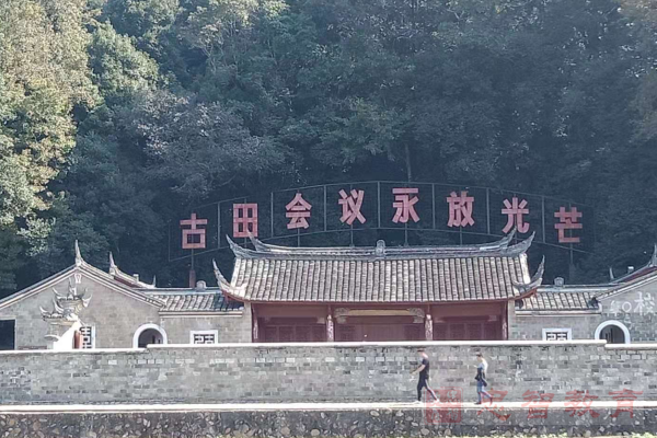 古田會(huì)議會(huì)址原來是廖家祠堂,此祠堂建于清末,民國(guó)以後(hòu)曾爲和聲小學(xué)校址。祠堂是一組磚木結構建築,由前後(hòu)廳和左右廂房組成(chéng)。祠堂外面(miàn)左側有水井,右側則有紅軍檢閱台,背後(hòu)杉柏參天挺拔。會(huì)址後(hòu)廳原是學(xué)校高年級課堂,古田會(huì)議就(jiù)在這(zhè)裡(lǐ)舉行。現在恢複了主席台、會(huì)标、黨旗、馬克思和列甯像、代表的席位。