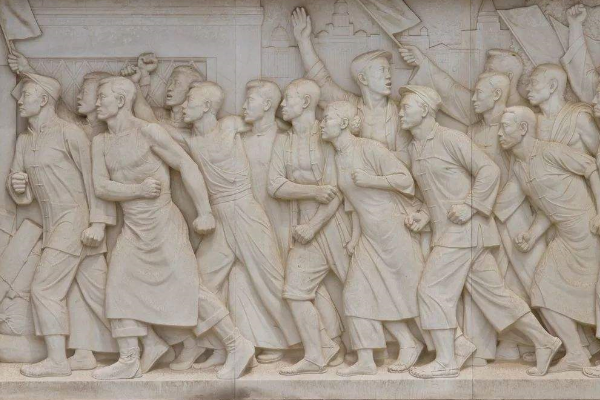 人民英雄紀念碑位于北京天安門廣場中心,天安門南約463米、正陽門北約440米的南北中軸線上。它莊嚴宏偉的雄姿,具有我國(guó)獨特的民族風格。在廣場中與天安門、正陽門形成(chéng)一個和諧的、一緻的、完整的建築群。人民英雄紀念碑呈方形,建築面(miàn)積爲3000平方米。分台座、須彌座和碑身三部分,總高37.94米。台座分兩(liǎng)層,四周環繞漢白玉欄杆,四面(miàn)均有台階。下層座爲海棠形,東西寬50.44米,南北長(cháng)61.54米;上層座呈方形。台座上是大小兩(liǎng)層須彌座,上層小須彌座四周镌刻有以牡丹、荷花、菊花、垂幔等組成(chéng)的八個花環。下層須彌座束腰部四面(miàn)鑲嵌著(zhe)八幅巨大的漢白玉浮雕,分别以“虎門銷煙”、“金田起(qǐ)義”、“武昌起(qǐ)義”、“五四運動”、“五卅運動”、“南昌起(qǐ)義”、“抗日遊擊戰争”、“勝利渡長(cháng)江”爲主題,在“勝利渡長(cháng)江”的浮雕兩(liǎng)側,另有兩(liǎng)幅以“支援前線”、“歡迎中國(guó)人民解放軍”爲題的裝飾性浮雕。浮雕高2米,總長(cháng)40.68米,浮雕镌刻著(zhe)170多個人物形象,生動而概括地表現出中國(guó)人民100多年來,特别是在中國(guó)0領導下28年來反帝反封建的偉大革命鬥争史實。